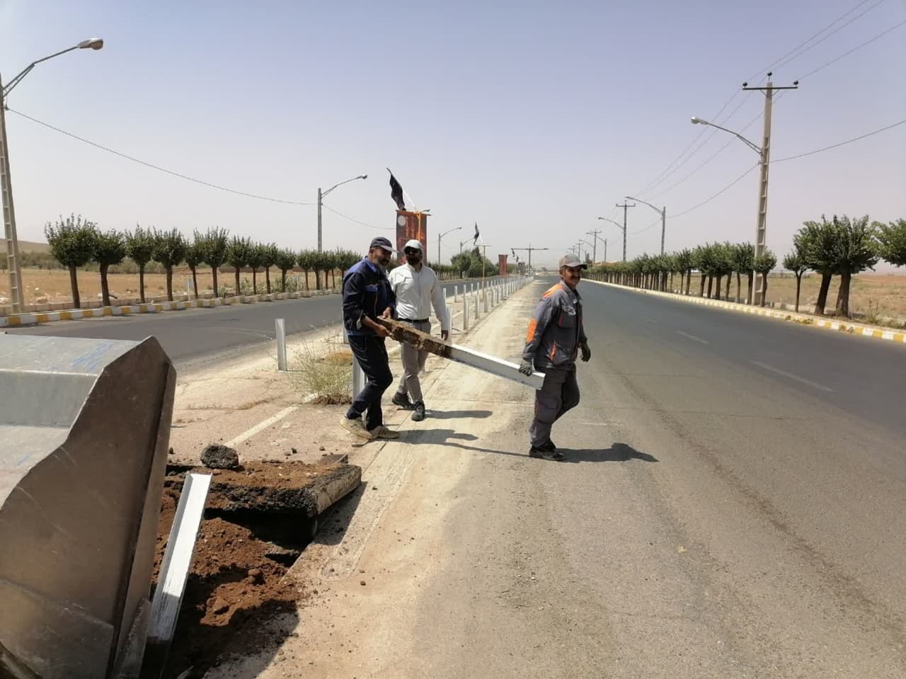 عملیات حذف و جمع آوری گاردریل و آماده سازی جهت جدول گذاری بلوار سردار شهید حاج قاسم سلیمانی توسط شهرداری نراق