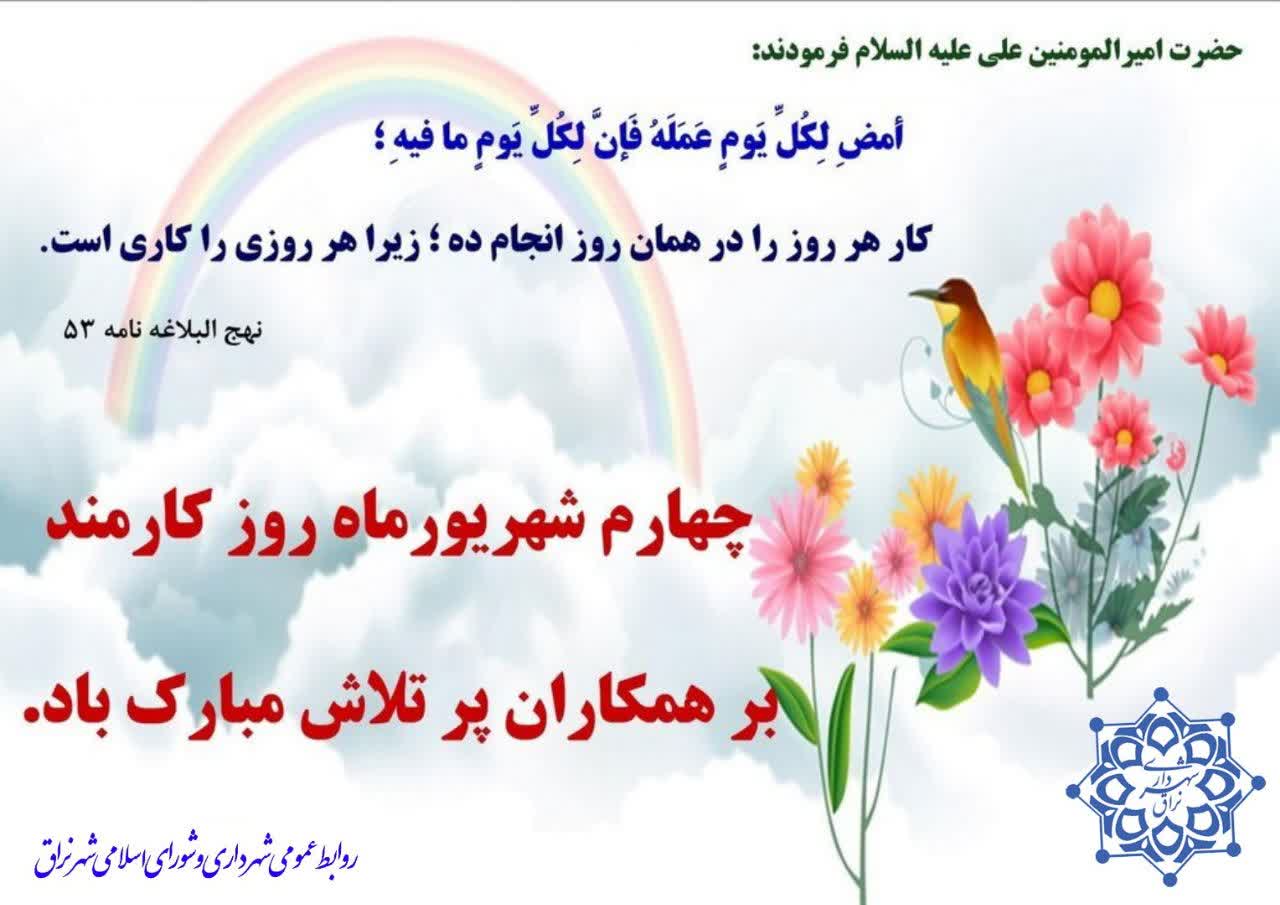 "روز کارمند بر شما تبریک و تهنیت باد"
